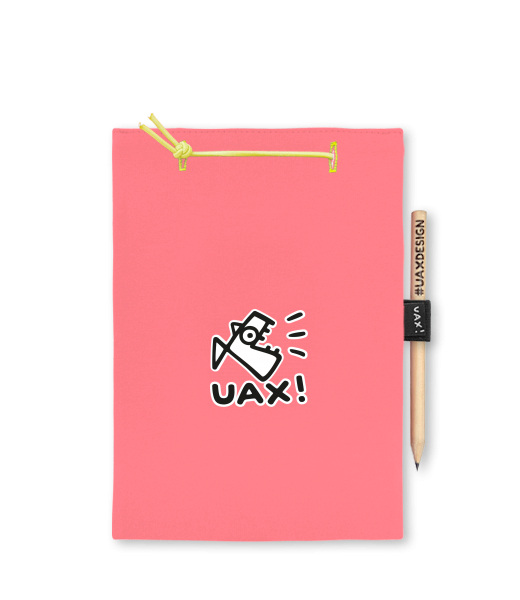Blok A4 s vyměnitelnými papíry. Na přední straně možnost výběru z více než 300 potisků. Vyrobeno ze 100% bavlny. Výběr z 28 barev. Tiskneme ručním sítotiskem. V horní části blok A4 stažen žlutou gumičkou. 60 listů s perforací pro snadnější odtržení. Žlutá guma ve spodní části pro zajištění obalu. K bloku získáte i tužku #UAXDESIGN