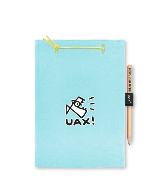 Blok A4 s vyměnitelnými papíry. Na přední straně možnost výběru z více než 300 potisků. Vyrobeno ze 100% bavlny. Výběr z 28 barev. Tiskneme ručním sítotiskem. V horní části blok A4 stažen žlutou gumičkou. 60 listů s perforací pro snadnější odtržení. Žlutá guma ve spodní části pro zajištění obalu. K bloku získáte i tužku #UAXDESIGN