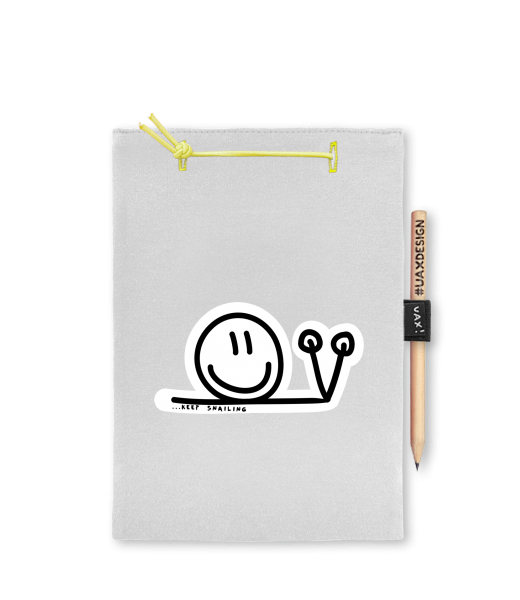Blok A4 s vyměnitelnými papíry. Na přední straně možnost výběru z více než 300 potisků. Vyrobeno ze 100% bavlny. Výběr z 28 barev. Tiskneme ručním sítotiskem. V horní části blok A4 stažen žlutou gumičkou. 60 listů s perforací pro snadnější odtržení. Žlutá guma ve spodní části pro zajištění obalu. K bloku získáte i tužku #UAXDESIGN