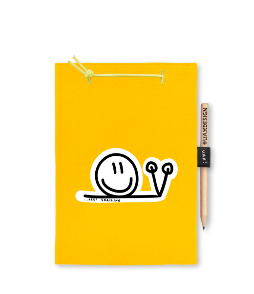 Blok A4 s vyměnitelnými papíry. Na přední straně možnost výběru z více než 300 potisků. Vyrobeno ze 100% bavlny. Výběr z 28 barev. Tiskneme ručním sítotiskem. V horní části blok A4 stažen žlutou gumičkou. 60 listů s perforací pro snadnější odtržení. Žlutá guma ve spodní části pro zajištění obalu. K bloku získáte i tužku #UAXDESIGN