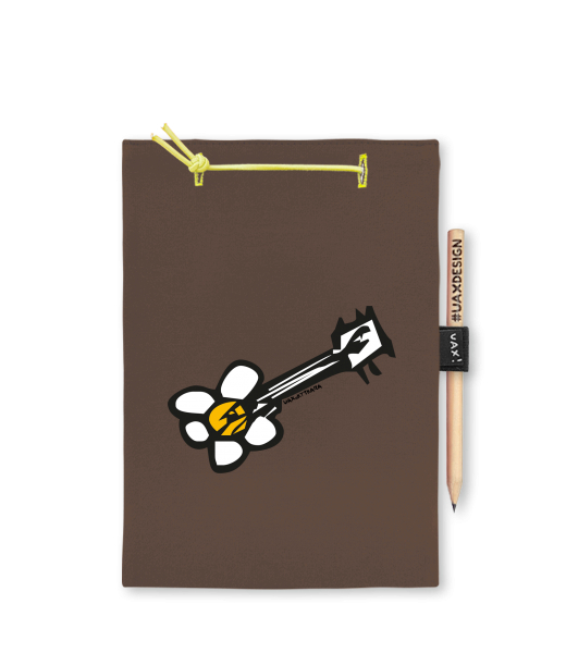 Blok A4 s vyměnitelnými papíry. Na přední straně možnost výběru z více než 300 potisků. Vyrobeno ze 100% bavlny. Výběr z 28 barev. Tiskneme ručním sítotiskem. V horní části blok A4 stažen žlutou gumičkou. 60 listů s perforací pro snadnější odtržení. Žlutá guma ve spodní části pro zajištění obalu. K bloku získáte i tužku #UAXDESIGN
