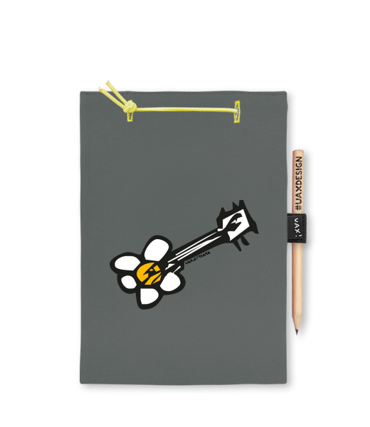 Blok A4 s vyměnitelnými papíry. Na přední straně možnost výběru z více než 300 potisků. Vyrobeno ze 100% bavlny. Výběr z 28 barev. Tiskneme ručním sítotiskem. V horní části blok A4 stažen žlutou gumičkou. 60 listů s perforací pro snadnější odtržení. Žlutá guma ve spodní části pro zajištění obalu. K bloku získáte i tužku #UAXDESIGN