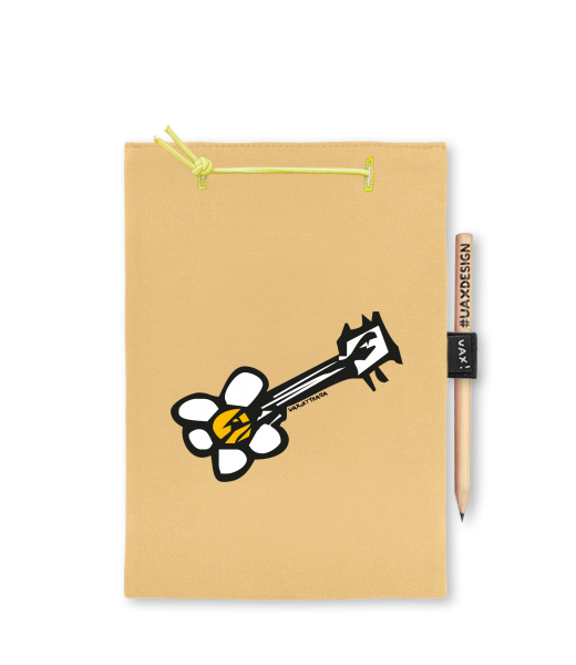 Blok A4 s vyměnitelnými papíry. Na přední straně možnost výběru z více než 300 potisků. Vyrobeno ze 100% bavlny. Výběr z 28 barev. Tiskneme ručním sítotiskem. V horní části blok A4 stažen žlutou gumičkou. 60 listů s perforací pro snadnější odtržení. Žlutá guma ve spodní části pro zajištění obalu. K bloku získáte i tužku #UAXDESIGN