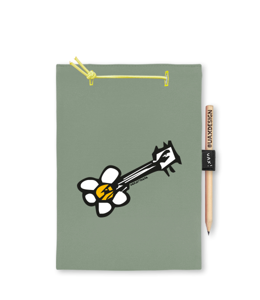 Blok A4 s vyměnitelnými papíry. Na přední straně možnost výběru z více než 300 potisků. Vyrobeno ze 100% bavlny. Výběr z 28 barev. Tiskneme ručním sítotiskem. V horní části blok A4 stažen žlutou gumičkou. 60 listů s perforací pro snadnější odtržení. Žlutá guma ve spodní části pro zajištění obalu. K bloku získáte i tužku #UAXDESIGN