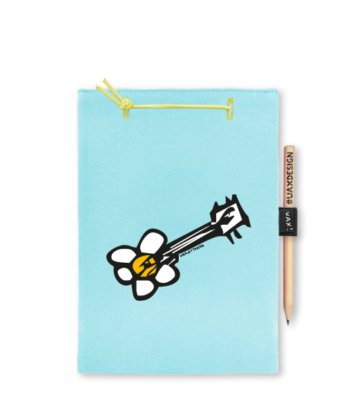 Blok A4 s vyměnitelnými papíry. Na přední straně možnost výběru z více než 300 potisků. Vyrobeno ze 100% bavlny. Výběr z 28 barev. Tiskneme ručním sítotiskem. V horní části blok A4 stažen žlutou gumičkou. 60 listů s perforací pro snadnější odtržení. Žlutá guma ve spodní části pro zajištění obalu. K bloku získáte i tužku #UAXDESIGN
