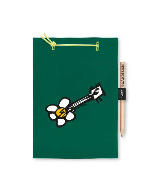 Blok A4 s vyměnitelnými papíry. Na přední straně možnost výběru z více než 300 potisků. Vyrobeno ze 100% bavlny. Výběr z 28 barev. Tiskneme ručním sítotiskem. V horní části blok A4 stažen žlutou gumičkou. 60 listů s perforací pro snadnější odtržení. Žlutá guma ve spodní části pro zajištění obalu. K bloku získáte i tužku #UAXDESIGN