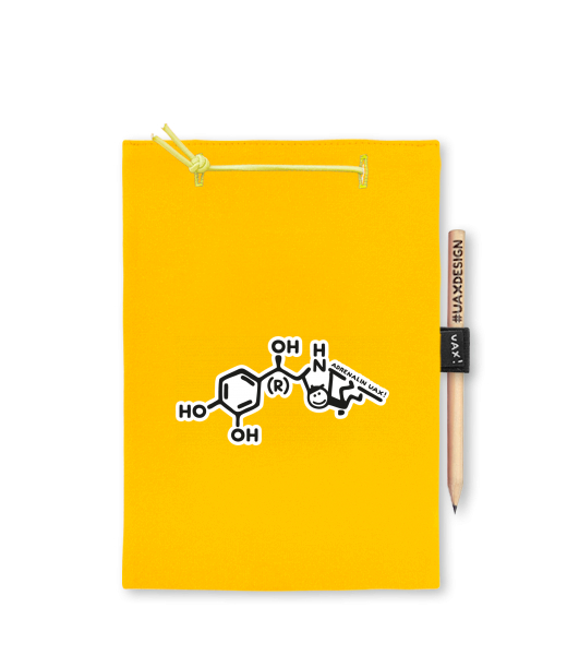 Blok A4 s vyměnitelnými papíry. Na přední straně možnost výběru z více než 300 potisků. Vyrobeno ze 100% bavlny. Výběr z 28 barev. Tiskneme ručním sítotiskem. V horní části blok A4 stažen žlutou gumičkou. 60 listů s perforací pro snadnější odtržení. Žlutá guma ve spodní části pro zajištění obalu. K bloku získáte i tužku #UAXDESIGN