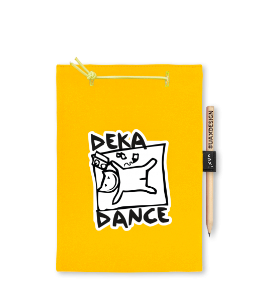 Blok A4 s vyměnitelnými papíry. Na přední straně možnost výběru z více než 300 potisků. Vyrobeno ze 100% bavlny. Výběr z 28 barev. Tiskneme ručním sítotiskem. V horní části blok A4 stažen žlutou gumičkou. 60 listů s perforací pro snadnější odtržení. Žlutá guma ve spodní části pro zajištění obalu. K bloku získáte i tužku #UAXDESIGN