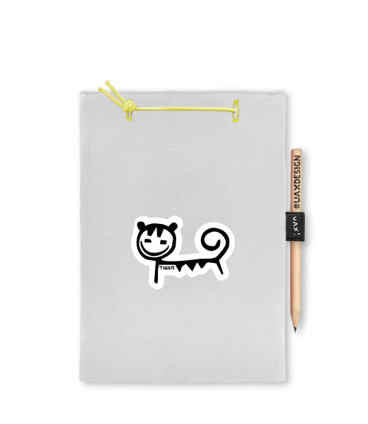 Blok A4 s vyměnitelnými papíry. Na přední straně možnost výběru z více než 300 potisků. Vyrobeno ze 100% bavlny. Výběr z 28 barev. Tiskneme ručním sítotiskem. V horní části blok A4 stažen žlutou gumičkou. 60 listů s perforací pro snadnější odtržení. Žlutá guma ve spodní části pro zajištění obalu. K bloku získáte i tužku #UAXDESIGN