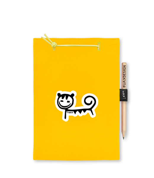 Blok A4 s vyměnitelnými papíry. Na přední straně možnost výběru z více než 300 potisků. Vyrobeno ze 100% bavlny. Výběr z 28 barev. Tiskneme ručním sítotiskem. V horní části blok A4 stažen žlutou gumičkou. 60 listů s perforací pro snadnější odtržení. Žlutá guma ve spodní části pro zajištění obalu. K bloku získáte i tužku #UAXDESIGN