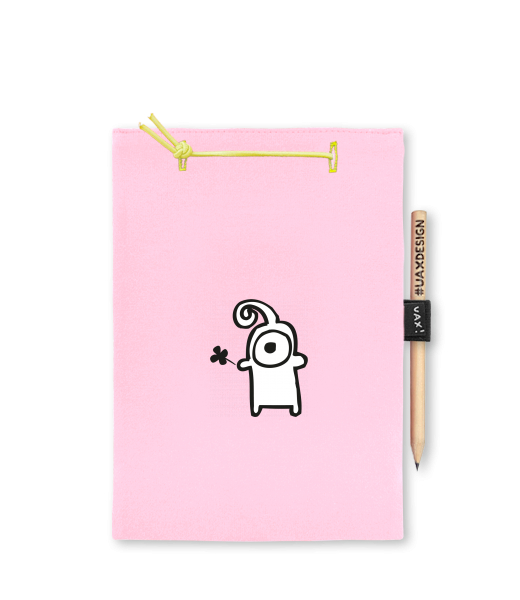 Blok A4 s vyměnitelnými papíry. Na přední straně možnost výběru z více než 300 potisků. Vyrobeno ze 100% bavlny. Výběr z 28 barev. Tiskneme ručním sítotiskem. V horní části blok A4 stažen žlutou gumičkou. 60 listů s perforací pro snadnější odtržení. Žlutá guma ve spodní části pro zajištění obalu. K bloku získáte i tužku #UAXDESIGN