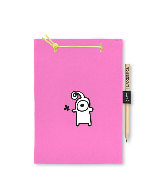 Blok A4 s vyměnitelnými papíry. Na přední straně možnost výběru z více než 300 potisků. Vyrobeno ze 100% bavlny. Výběr z 28 barev. Tiskneme ručním sítotiskem. V horní části blok A4 stažen žlutou gumičkou. 60 listů s perforací pro snadnější odtržení. Žlutá guma ve spodní části pro zajištění obalu. K bloku získáte i tužku #UAXDESIGN