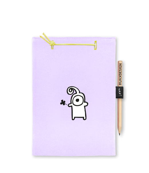 Blok A4 s vyměnitelnými papíry. Na přední straně možnost výběru z více než 300 potisků. Vyrobeno ze 100% bavlny. Výběr z 28 barev. Tiskneme ručním sítotiskem. V horní části blok A4 stažen žlutou gumičkou. 60 listů s perforací pro snadnější odtržení. Žlutá guma ve spodní části pro zajištění obalu. K bloku získáte i tužku #UAXDESIGN