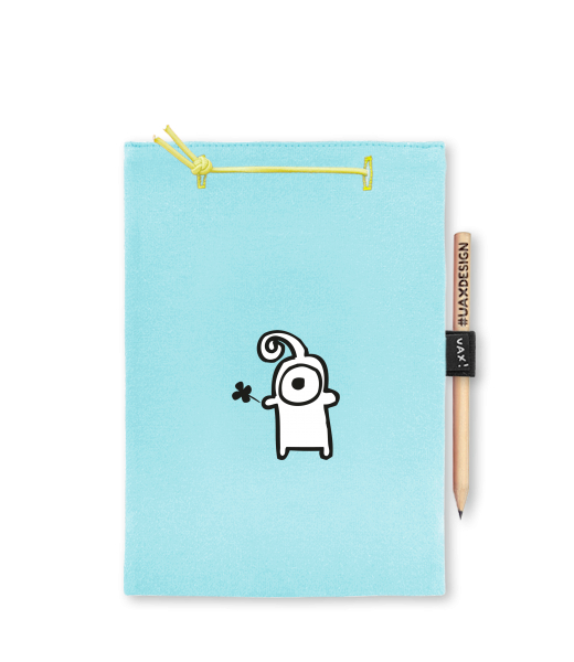 Blok A4 s vyměnitelnými papíry. Na přední straně možnost výběru z více než 300 potisků. Vyrobeno ze 100% bavlny. Výběr z 28 barev. Tiskneme ručním sítotiskem. V horní části blok A4 stažen žlutou gumičkou. 60 listů s perforací pro snadnější odtržení. Žlutá guma ve spodní části pro zajištění obalu. K bloku získáte i tužku #UAXDESIGN
