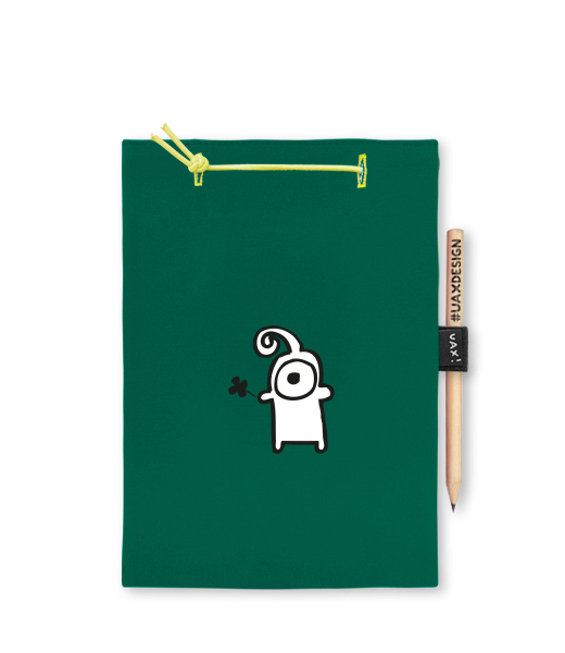 Blok A4 s vyměnitelnými papíry. Na přední straně možnost výběru z více než 300 potisků. Vyrobeno ze 100% bavlny. Výběr z 28 barev. Tiskneme ručním sítotiskem. V horní části blok A4 stažen žlutou gumičkou. 60 listů s perforací pro snadnější odtržení. Žlutá guma ve spodní části pro zajištění obalu. K bloku získáte i tužku #UAXDESIGN