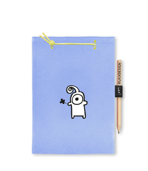 Blok A4 s vyměnitelnými papíry. Na přední straně možnost výběru z více než 300 potisků. Vyrobeno ze 100% bavlny. Výběr z 28 barev. Tiskneme ručním sítotiskem. V horní části blok A4 stažen žlutou gumičkou. 60 listů s perforací pro snadnější odtržení. Žlutá guma ve spodní části pro zajištění obalu. K bloku získáte i tužku #UAXDESIGN
