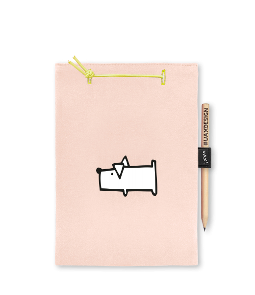 Blok A4 s vyměnitelnými papíry. Na přední straně možnost výběru z více než 300 potisků. Vyrobeno ze 100% bavlny. Výběr z 28 barev. Tiskneme ručním sítotiskem. V horní části blok A4 stažen žlutou gumičkou. 60 listů s perforací pro snadnější odtržení. Žlutá guma ve spodní části pro zajištění obalu. K bloku získáte i tužku #UAXDESIGN