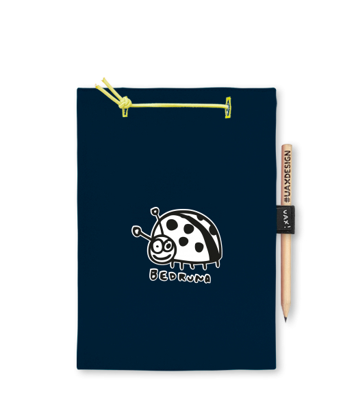 Blok A4 s vyměnitelnými papíry. Na přední straně možnost výběru z více než 300 potisků. Vyrobeno ze 100% bavlny. Výběr z 28 barev. Tiskneme ručním sítotiskem. V horní části blok A4 stažen žlutou gumičkou. 60 listů s perforací pro snadnější odtržení. Žlutá guma ve spodní části pro zajištění obalu. K bloku získáte i tužku #UAXDESIGN