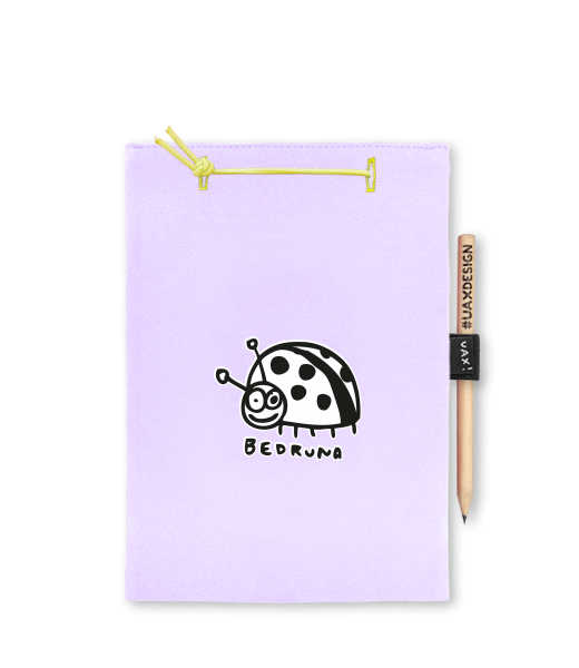 Blok A4 s vyměnitelnými papíry. Na přední straně možnost výběru z více než 300 potisků. Vyrobeno ze 100% bavlny. Výběr z 28 barev. Tiskneme ručním sítotiskem. V horní části blok A4 stažen žlutou gumičkou. 60 listů s perforací pro snadnější odtržení. Žlutá guma ve spodní části pro zajištění obalu. K bloku získáte i tužku #UAXDESIGN
