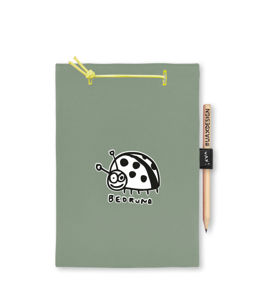 Blok A4 s vyměnitelnými papíry. Na přední straně možnost výběru z více než 300 potisků. Vyrobeno ze 100% bavlny. Výběr z 28 barev. Tiskneme ručním sítotiskem. V horní části blok A4 stažen žlutou gumičkou. 60 listů s perforací pro snadnější odtržení. Žlutá guma ve spodní části pro zajištění obalu. K bloku získáte i tužku #UAXDESIGN