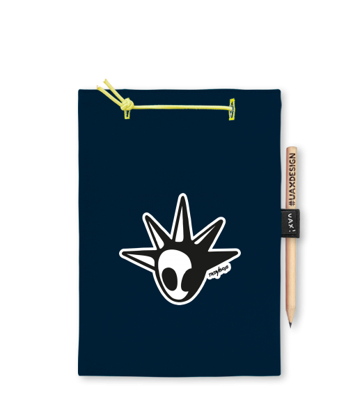 Blok A4 s vyměnitelnými papíry. Na přední straně možnost výběru z více než 300 potisků. Vyrobeno ze 100% bavlny. Výběr z 28 barev. Tiskneme ručním sítotiskem. V horní části blok A4 stažen žlutou gumičkou. 60 listů s perforací pro snadnější odtržení. Žlutá guma ve spodní části pro zajištění obalu. K bloku získáte i tužku #UAXDESIGN
