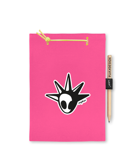 Blok A4 s vyměnitelnými papíry. Na přední straně možnost výběru z více než 300 potisků. Vyrobeno ze 100% bavlny. Výběr z 28 barev. Tiskneme ručním sítotiskem. V horní části blok A4 stažen žlutou gumičkou. 60 listů s perforací pro snadnější odtržení. Žlutá guma ve spodní části pro zajištění obalu. K bloku získáte i tužku #UAXDESIGN