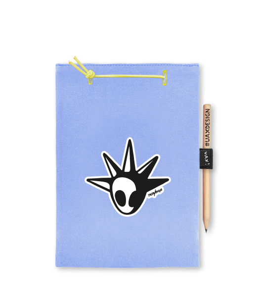 Blok A4 s vyměnitelnými papíry. Na přední straně možnost výběru z více než 300 potisků. Vyrobeno ze 100% bavlny. Výběr z 28 barev. Tiskneme ručním sítotiskem. V horní části blok A4 stažen žlutou gumičkou. 60 listů s perforací pro snadnější odtržení. Žlutá guma ve spodní části pro zajištění obalu. K bloku získáte i tužku #UAXDESIGN