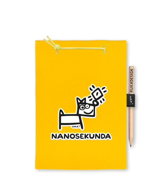 Blok A4 s vyměnitelnými papíry. Na přední straně možnost výběru z více než 300 potisků. Vyrobeno ze 100% bavlny. Výběr z 28 barev. Tiskneme ručním sítotiskem. V horní části blok A4 stažen žlutou gumičkou. 60 listů s perforací pro snadnější odtržení. Žlutá guma ve spodní části pro zajištění obalu. K bloku získáte i tužku #UAXDESIGN