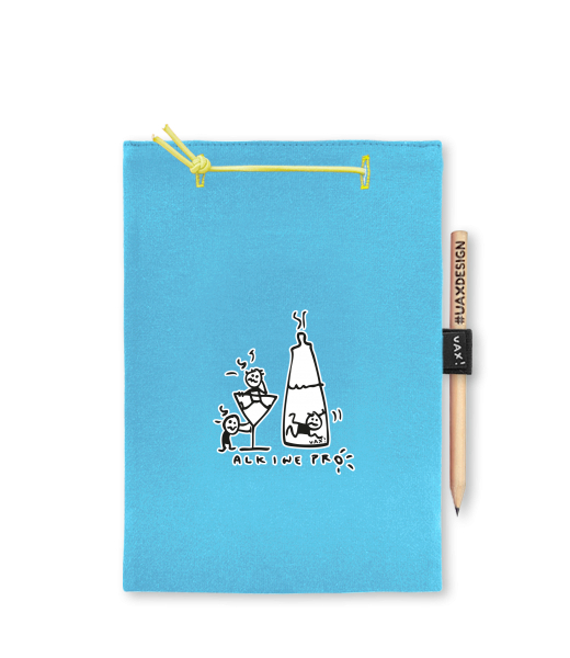 Blok A4 s vyměnitelnými papíry. Na přední straně možnost výběru z více než 300 potisků. Vyrobeno ze 100% bavlny. Výběr z 28 barev. Tiskneme ručním sítotiskem. V horní části blok A4 stažen žlutou gumičkou. 60 listů s perforací pro snadnější odtržení. Žlutá guma ve spodní části pro zajištění obalu. K bloku získáte i tužku #UAXDESIGN