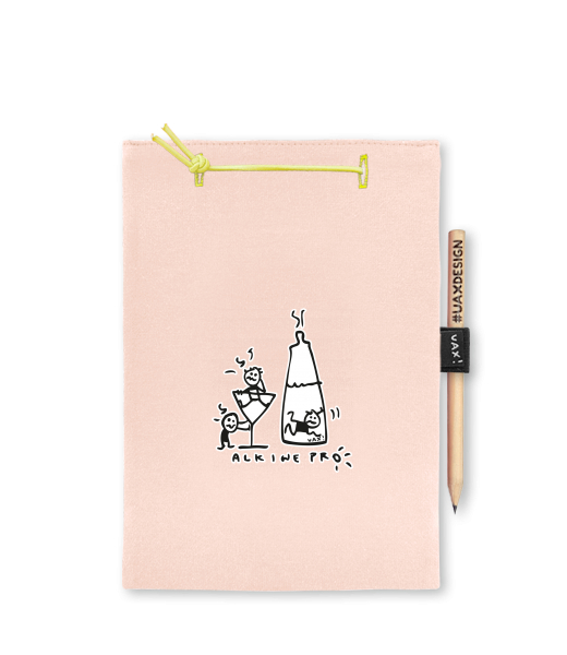 Blok A4 s vyměnitelnými papíry. Na přední straně možnost výběru z více než 300 potisků. Vyrobeno ze 100% bavlny. Výběr z 28 barev. Tiskneme ručním sítotiskem. V horní části blok A4 stažen žlutou gumičkou. 60 listů s perforací pro snadnější odtržení. Žlutá guma ve spodní části pro zajištění obalu. K bloku získáte i tužku #UAXDESIGN
