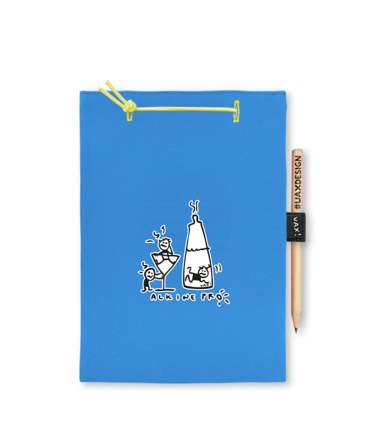 Blok A4 s vyměnitelnými papíry. Na přední straně možnost výběru z více než 300 potisků. Vyrobeno ze 100% bavlny. Výběr z 28 barev. Tiskneme ručním sítotiskem. V horní části blok A4 stažen žlutou gumičkou. 60 listů s perforací pro snadnější odtržení. Žlutá guma ve spodní části pro zajištění obalu. K bloku získáte i tužku #UAXDESIGN