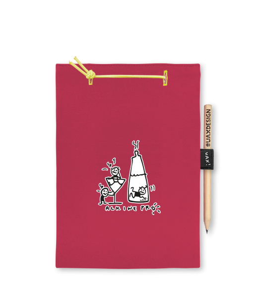 Blok A4 s vyměnitelnými papíry. Na přední straně možnost výběru z více než 300 potisků. Vyrobeno ze 100% bavlny. Výběr z 28 barev. Tiskneme ručním sítotiskem. V horní části blok A4 stažen žlutou gumičkou. 60 listů s perforací pro snadnější odtržení. Žlutá guma ve spodní části pro zajištění obalu. K bloku získáte i tužku #UAXDESIGN