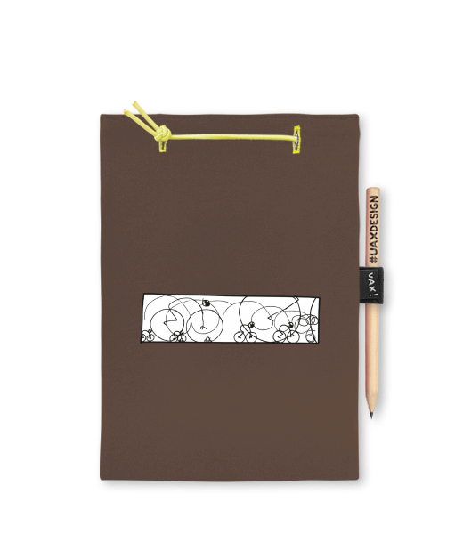 Blok A4 s vyměnitelnými papíry. Na přední straně možnost výběru z více než 300 potisků. Vyrobeno ze 100% bavlny. Výběr z 28 barev. Tiskneme ručním sítotiskem. V horní části blok A4 stažen žlutou gumičkou. 60 listů s perforací pro snadnější odtržení. Žlutá guma ve spodní části pro zajištění obalu. K bloku získáte i tužku #UAXDESIGN