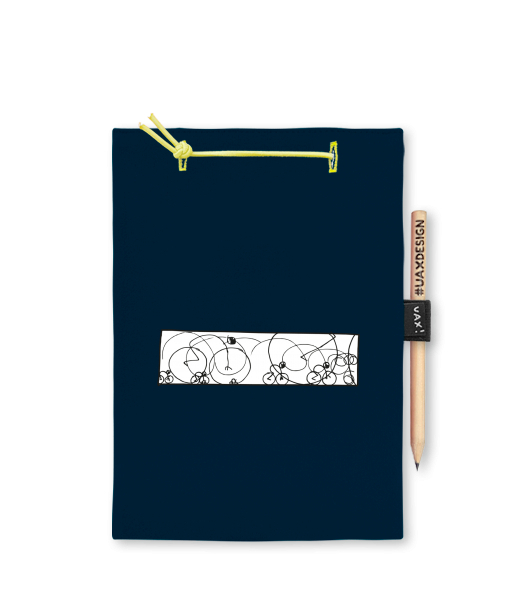 Blok A4 s vyměnitelnými papíry. Na přední straně možnost výběru z více než 300 potisků. Vyrobeno ze 100% bavlny. Výběr z 28 barev. Tiskneme ručním sítotiskem. V horní části blok A4 stažen žlutou gumičkou. 60 listů s perforací pro snadnější odtržení. Žlutá guma ve spodní části pro zajištění obalu. K bloku získáte i tužku #UAXDESIGN