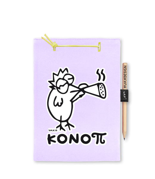 Blok A5 s vyměnitelnými papíry. Na přední straně možnost výběru z více než 300 potisků. Vyrobeno ze 100% bavlny. Výběr z 28 barev. Tiskneme ručním sítotiskem. V horní části blok A5 stažen žlutou gumičkou. 60 listů s perforací pro snadnější odtržení. Žlutá guma ve spodní části pro zajištění obalu. K bloku získáte i tužku #UAXDESIGN