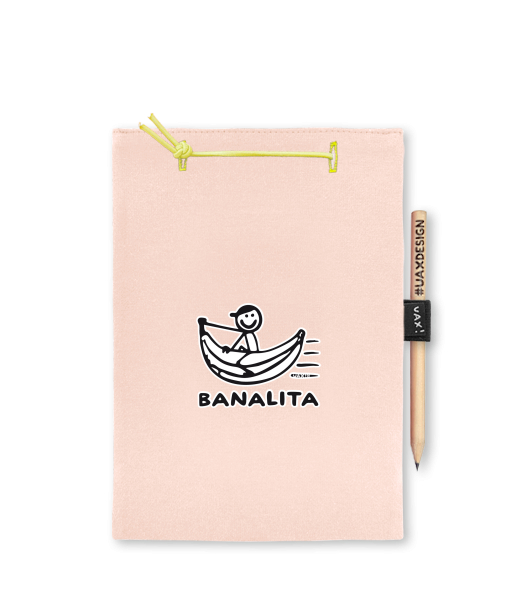 Blok A5 s vyměnitelnými papíry. Na přední straně možnost výběru z více než 300 potisků. Vyrobeno ze 100% bavlny. Výběr z 28 barev. Tiskneme ručním sítotiskem. V horní části blok A5 stažen žlutou gumičkou. 60 listů s perforací pro snadnější odtržení. Žlutá guma ve spodní části pro zajištění obalu. K bloku získáte i tužku #UAXDESIGN