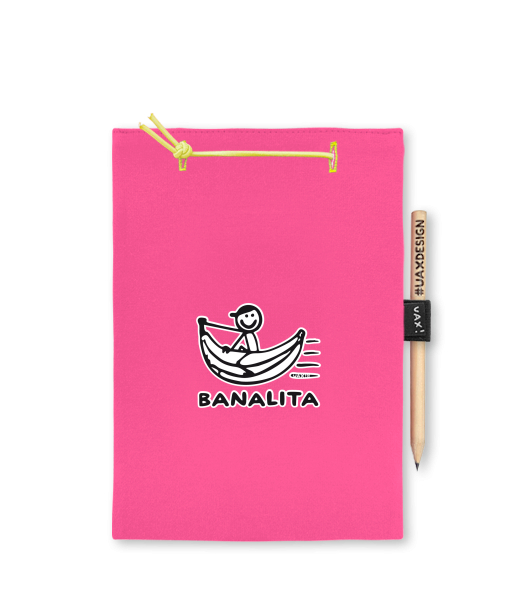 Blok A5 s vyměnitelnými papíry. Na přední straně možnost výběru z více než 300 potisků. Vyrobeno ze 100% bavlny. Výběr z 28 barev. Tiskneme ručním sítotiskem. V horní části blok A5 stažen žlutou gumičkou. 60 listů s perforací pro snadnější odtržení. Žlutá guma ve spodní části pro zajištění obalu. K bloku získáte i tužku #UAXDESIGN