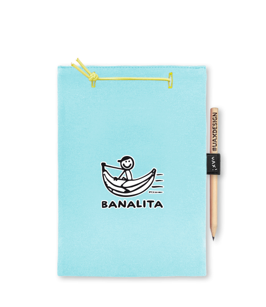 Blok A5 s vyměnitelnými papíry. Na přední straně možnost výběru z více než 300 potisků. Vyrobeno ze 100% bavlny. Výběr z 28 barev. Tiskneme ručním sítotiskem. V horní části blok A5 stažen žlutou gumičkou. 60 listů s perforací pro snadnější odtržení. Žlutá guma ve spodní části pro zajištění obalu. K bloku získáte i tužku #UAXDESIGN