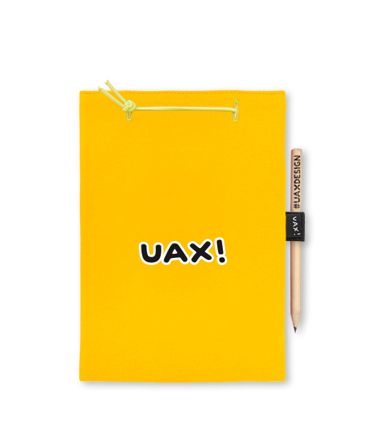 Blok A5 s vyměnitelnými papíry. Na přední straně možnost výběru z více než 300 potisků. Vyrobeno ze 100% bavlny. Výběr z 28 barev. Tiskneme ručním sítotiskem. V horní části blok A5 stažen žlutou gumičkou. 60 listů s perforací pro snadnější odtržení. Žlutá guma ve spodní části pro zajištění obalu. K bloku získáte i tužku #UAXDESIGN