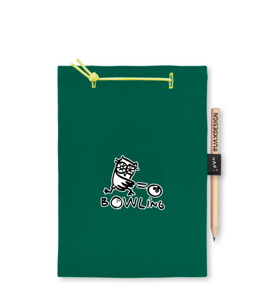Vyrábíme udržitelné oblečení UAX! - ručně šité v Česku uaxDoplňky uaxVšechny produktyBloky a fixyBLOK A5potisk 1103 - BOWLINGUNIVERSITY GREEN