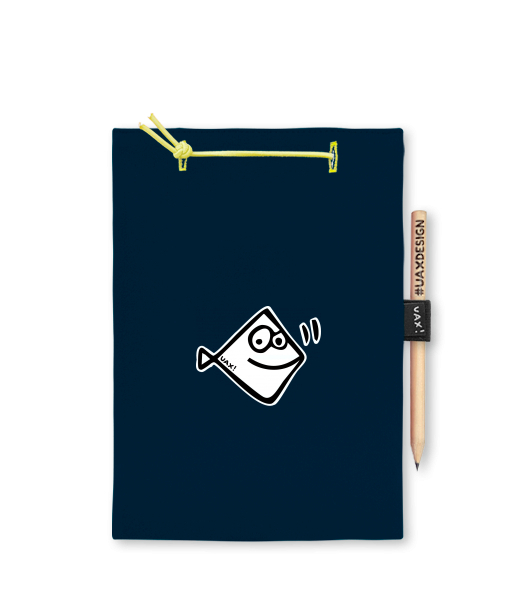 Blok A5 s vyměnitelnými papíry. Na přední straně možnost výběru z více než 300 potisků. Vyrobeno ze 100% bavlny. Výběr z 28 barev. Tiskneme ručním sítotiskem. V horní části blok A5 stažen žlutou gumičkou. 60 listů s perforací pro snadnější odtržení. Žlutá guma ve spodní části pro zajištění obalu. K bloku získáte i tužku #UAXDESIGN
