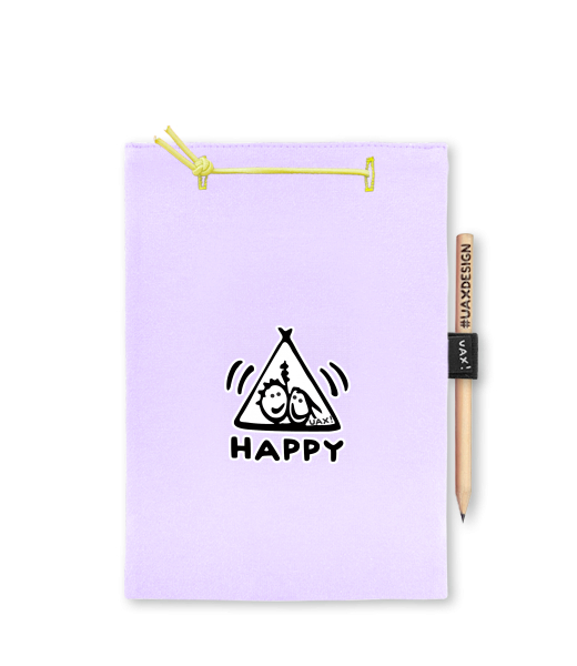 Blok A5 s vyměnitelnými papíry. Na přední straně možnost výběru z více než 300 potisků. Vyrobeno ze 100% bavlny. Výběr z 28 barev. Tiskneme ručním sítotiskem. V horní části blok A5 stažen žlutou gumičkou. 60 listů s perforací pro snadnější odtržení. Žlutá guma ve spodní části pro zajištění obalu. K bloku získáte i tužku #UAXDESIGN