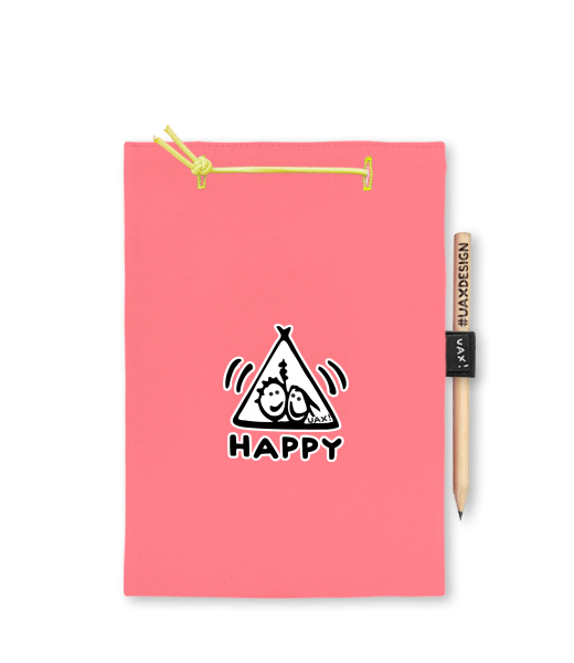 Blok A5 s vyměnitelnými papíry. Na přední straně možnost výběru z více než 300 potisků. Vyrobeno ze 100% bavlny. Výběr z 28 barev. Tiskneme ručním sítotiskem. V horní části blok A5 stažen žlutou gumičkou. 60 listů s perforací pro snadnější odtržení. Žlutá guma ve spodní části pro zajištění obalu. K bloku získáte i tužku #UAXDESIGN