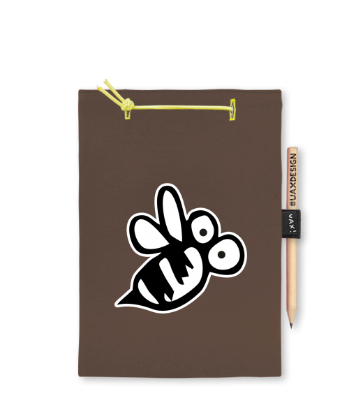 Blok A5 s vyměnitelnými papíry. Na přední straně možnost výběru z více než 300 potisků. Vyrobeno ze 100% bavlny. Výběr z 28 barev. Tiskneme ručním sítotiskem. V horní části blok A5 stažen žlutou gumičkou. 60 listů s perforací pro snadnější odtržení. Žlutá guma ve spodní části pro zajištění obalu. K bloku získáte i tužku #UAXDESIGN