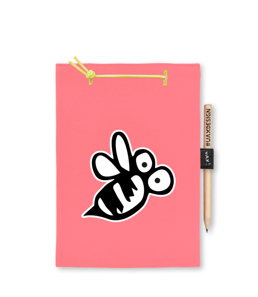 Blok A5 s vyměnitelnými papíry. Na přední straně možnost výběru z více než 300 potisků. Vyrobeno ze 100% bavlny. Výběr z 28 barev. Tiskneme ručním sítotiskem. V horní části blok A5 stažen žlutou gumičkou. 60 listů s perforací pro snadnější odtržení. Žlutá guma ve spodní části pro zajištění obalu. K bloku získáte i tužku #UAXDESIGN