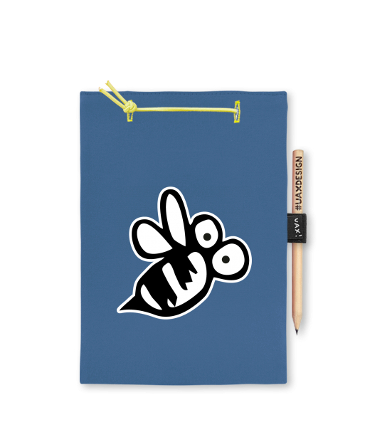 Blok A5 s vyměnitelnými papíry. Na přední straně možnost výběru z více než 300 potisků. Vyrobeno ze 100% bavlny. Výběr z 28 barev. Tiskneme ručním sítotiskem. V horní části blok A5 stažen žlutou gumičkou. 60 listů s perforací pro snadnější odtržení. Žlutá guma ve spodní části pro zajištění obalu. K bloku získáte i tužku #UAXDESIGN
