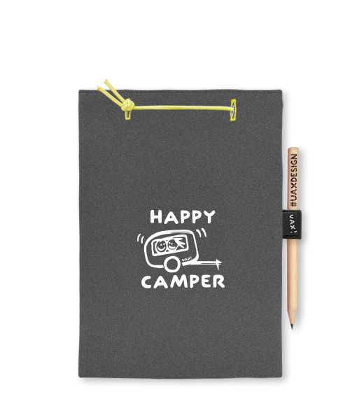 BLOK A5 s potiskem 1116 HAPPY CAMPER v barvě GRAFIT
