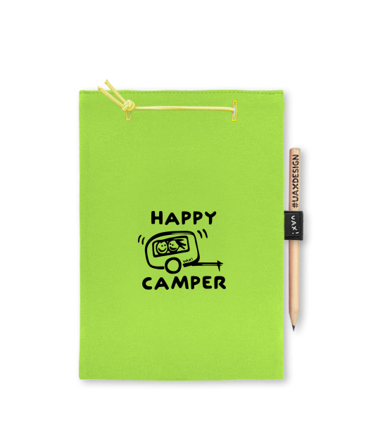 BLOK A5 s potiskem 1116 HAPPY CAMPER v barvě PARROT GREEN