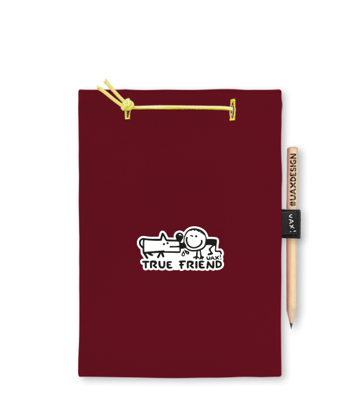 Vyrábíme udržitelné oblečení UAX! - ručně šité v Česku uaxDoplňky uaxVšechny produktyBloky a fixyBLOK A5potisk 1123 - TRUE FRIENDDARK RED