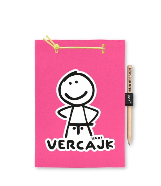 Blok A5 s vyměnitelnými papíry. Na přední straně možnost výběru z více než 300 potisků. Vyrobeno ze 100% bavlny. Výběr z 28 barev. Tiskneme ručním sítotiskem. V horní části blok A5 stažen žlutou gumičkou. 60 listů s perforací pro snadnější odtržení. Žlutá guma ve spodní části pro zajištění obalu. K bloku získáte i tužku #UAXDESIGN